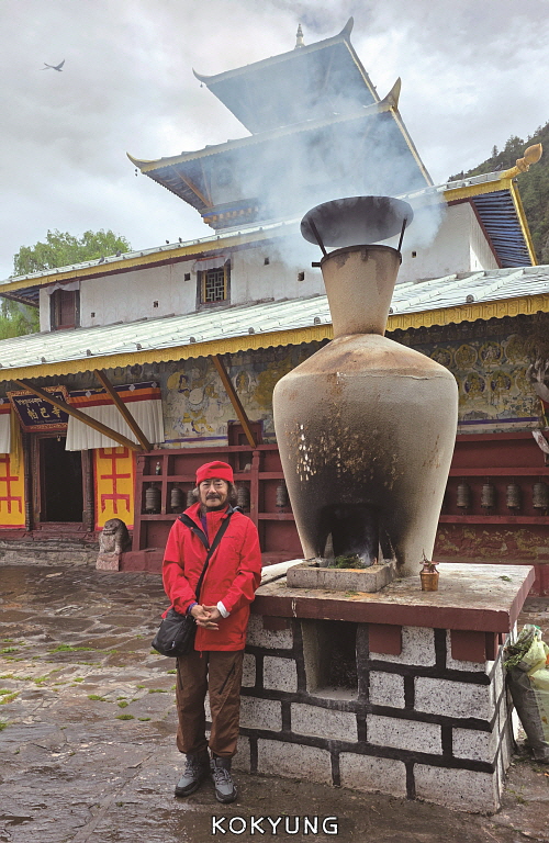기분 전환을 겸하여 발걸음을 옮겨 비가 내려 더욱 고즈넉한 빡바(Pakba) 사원으로 들어가 법당 주위를 3번 꼬라(Kora)를 돌고 나서 분향대焚香臺 앞에 서서 향나무 가루를 한 웅큼 집어넣는다. 그리고 허공으로 피어오르는 흰 연기를 바라보면서 나라 잃은 민족의 앞날을 위해 두 손을 모아 기도드렸다.