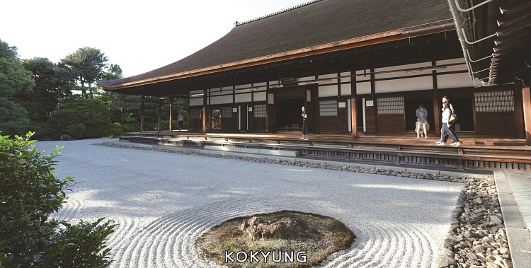 건인사에서 주석하던 에사이화상은 현재 교토 은각사銀閣寺 구역에 있는 서원書院 건물인 동구당東求堂 동인재同仁齋에서 처음으로 송나라 다법에 따른 다도를 시행하였다. 1486년 건립시의 원형을 그대로 유지하고 있는 동구당은 현존하는 일본 최고最古의 서원 다실 건물이고, 동인재 다실은 다다미 4장 반 크기 다실의 원형이다.