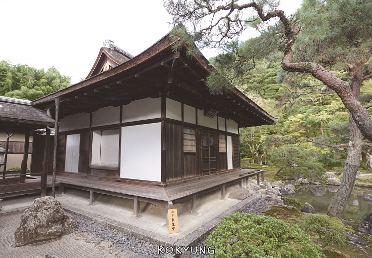 1482년 무로마치막부 8대 쇼군인 아시카가 요시마사足利義政(1436∼1490)가 히가시야마東山에 동산전東山殿이라는 별장을 조성하고 그의 사후에 이를 사찰로 하여 자조사慈照寺라 하였다. 임제종 선찰禪刹 상국사相國寺의 탑두사원塔頭寺院인 녹원사鹿苑寺의 사리전舎利殿이 황금색이어서 ‘금각金閣’이라고 부르는 것에 대비하여 자조사의 관음전觀音殿을 ‘은각銀閣’이라고 부르면서 통상 은각사라고 부른다. 녹원사는 북산北山 문화를 주도한 3대 쇼군 아시카가 요시미츠足利義満(1358∼1408)가 1397년에 조성하였다. 동산문화의 본산이 된 은각사 서원양식의 별장 거실에서 거행된 ‘차노유茶の湯’의 다회로 형성된 차문화가 ‘동산차東山茶’였고, 이러한 차문화를 일본에서는 서원차書院茶라고 하였다.