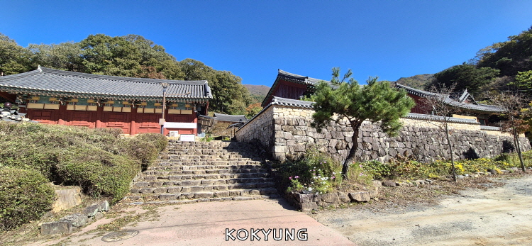 조선시대인 1683년(숙종 9)에 학현學玄대사가 중건한 이래 보수를 거치며 지금까지 유지되어 오고 있다. 보물로 지정할 수밖에 없는 국가의 문화유산이다. 현판의 글씨는 구한말에 당대 조선을 대표한 서예가인 성당惺堂 김돈희金敦熙(1871~1937) 선생이 썼다. 성당 선생의 자유로운 예서풍이 진하게 배어 있는 필법으로 해서로 쓴 것이다. 글씨를 새기는 사람이 성당 선생의 원래의 필법을 제대로 살리지 못한 점이 아쉽다. 문의 뒤쪽에는 「鳳凰門」이라는 현판이 걸려 있다.