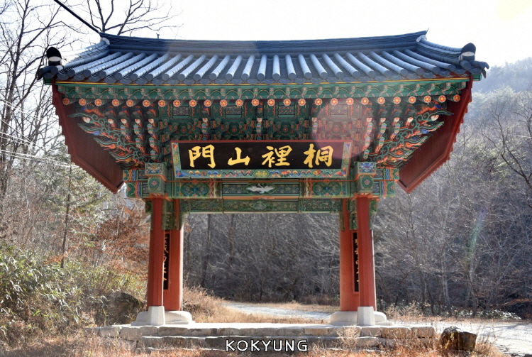 태안사 계곡을 따라 걸어가다 보면 처음 만나는 것이 「棟裡山門」이라고 쓴 현액이 걸려 있는 문을 만난다. 사역이 시작하는 곳에 세운 것인데, 여기서 한참이나 들어가야 일주문이 있기에 근래에 사역이 시작되는 지점을 알리고자 문을 세웠다. 문의 현액과 양쪽 기둥에 걸린 주련은 우리 시대의 진정한 선장인 송담정은松潭正隱(1927~) 선사의 글씨이다. ‘裏리’와 ‘裡리’는 같은 글자다. 송담선사는 전강영신田岡永信(1898~1975) 선사의 적전제자로 ‘북송담 남진제’라고 칭할 때, 그 송담선사이다. 스승이 오도송을 읊고 한 시절 머물었던 태안사이기에 송담선사의 감회는 특별했으리라 생각된다.