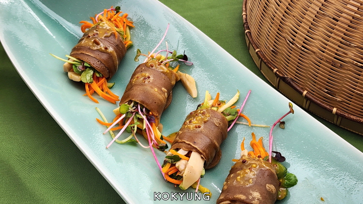 그리고 발효음식에서는 기순도 명인님께서 전통 장을 기반으로 건강한 먹거리를 선사해 주셨습니다. 이번 달 지구를 살리는 사찰음식에서는 남도국제미식산업박람회에서 소개된 경운스님의 가을버섯묵과 도토리채소밀쌈을 소개해 봅니다.